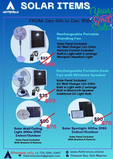 From Solar Fans, Cameras, and Lights to Computer Accessories and more! Click the button below to find out more. Free SXM Delivery!